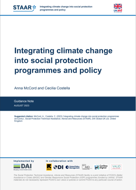 This report looks at the role of social protection in relation carbon change mitigation, a series of guidance outputs for the FCDO on Climate and Social Protection through the STAAR initiative, including a Mapping of Key Stakeholder initiatives published in November 2023, and a Thematic Guidance Note and Quick Tips note on social protection the environment and climate change for the European Commission.